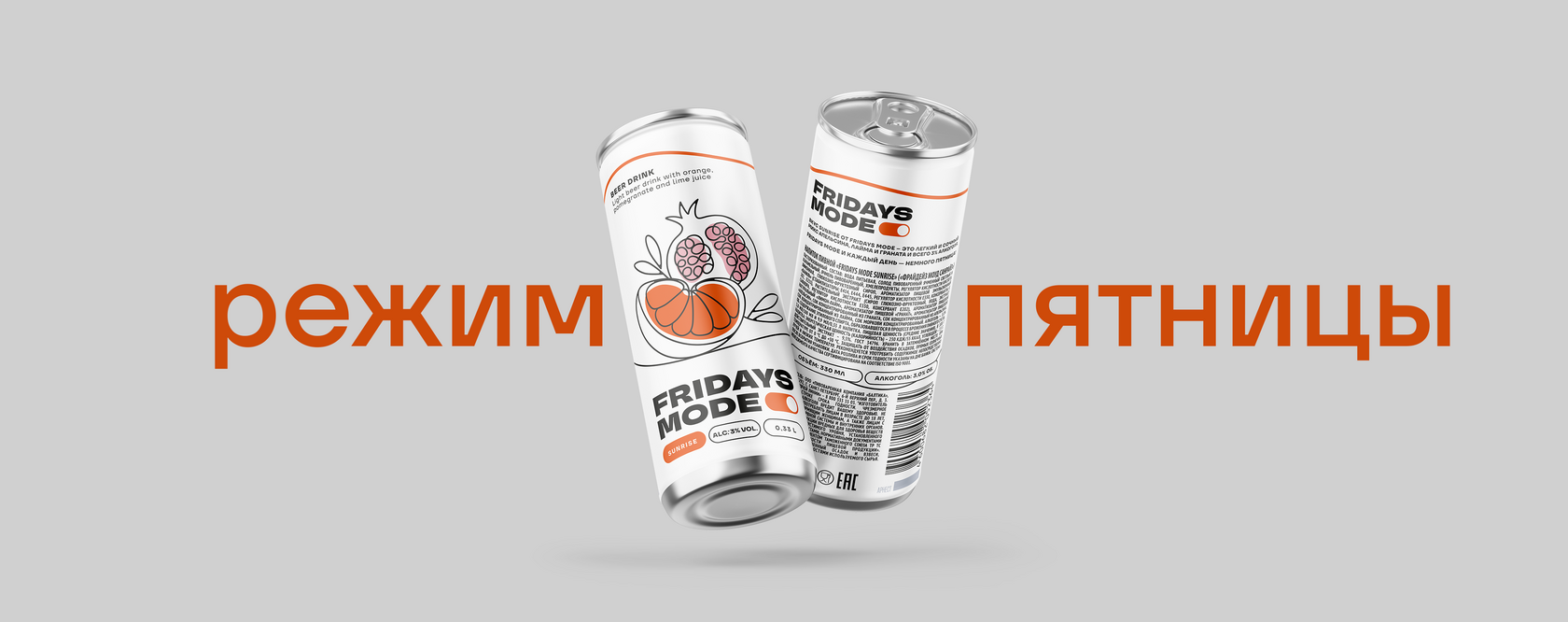 Первый напиток в серии - Sunrise от FRIDAYS – освежающий сокосодержащий пивной коктейль. Мгновенно освежает, утоляет жажду вкуса и дарит заряд бодрости. Сочная комбинация апельсина, граната и лайма – взрыв кисло-сладкой свежести – будто ныряешь с друзьями в прохладное озеро посреди лета. Теперь ты готов веселиться, а не «выключаться».